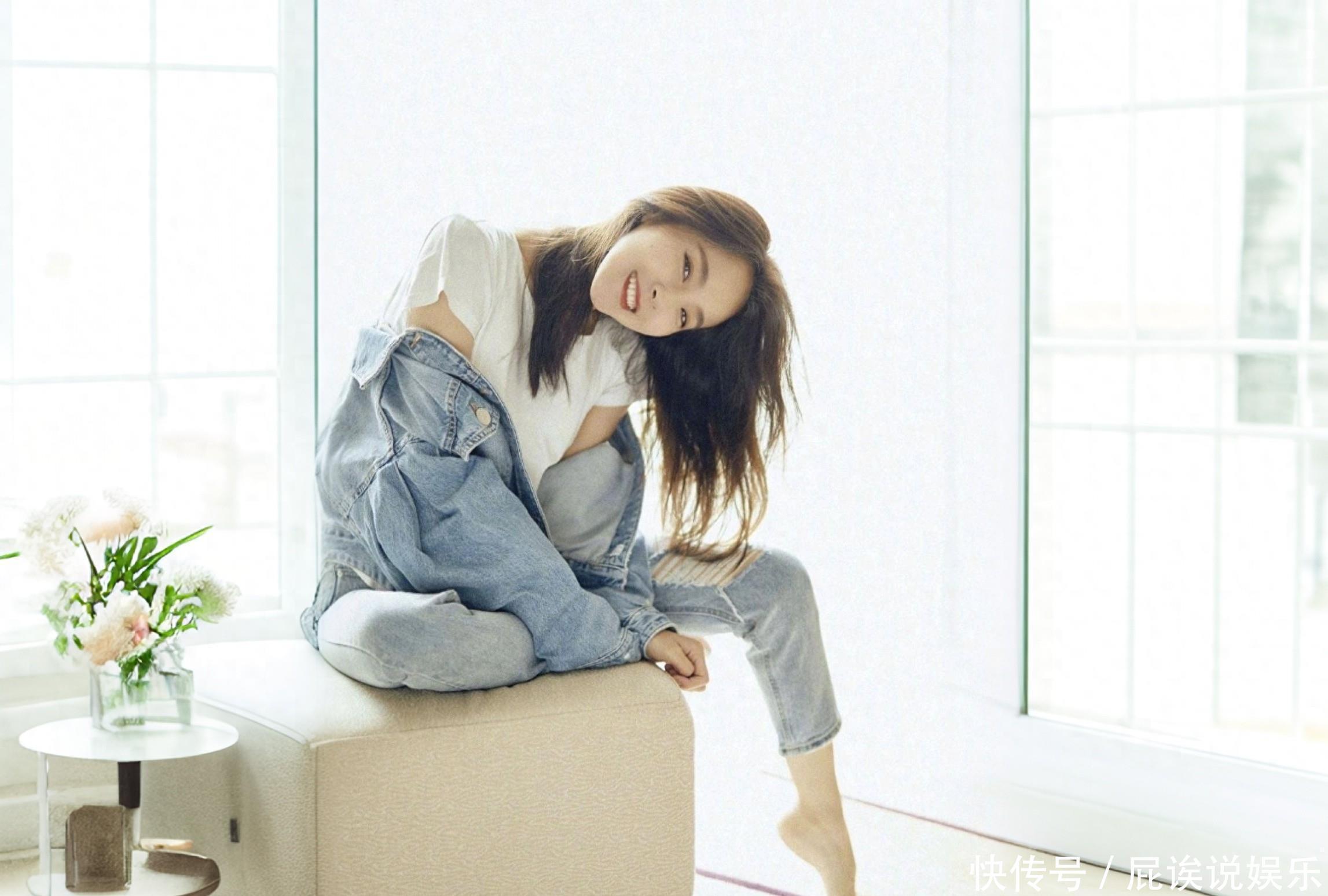 哎妈呀,这哪是明星啊?这不就是咱隔壁家妹子嘛!裤腿卷起,外套歪戴,拖鞋甩飞,整个一在家犯懒的德行。可人家张佳宁就这么一坐,光脚丫也美得上天,清纯模样看得人心怦怦跳!背景那大窗户透亮,绿植点缀,光线把她照得水灵灵的。那小眼神带点惊讶,又有点迷离,绝了!既有少女的纯,又掺着轻熟的媚,这反差谁扛得住?